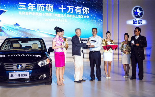 2013年9月8日,啟辰品牌誕生三周年,東風(fēng)日產(chǎn)在鄭州工廠迎接啟辰第十萬臺新車下線,當(dāng)天,全球首款搭載北斗導(dǎo)航系統(tǒng)的量產(chǎn)乘用車-啟辰北斗導(dǎo)航版也正式公布價格上市。
